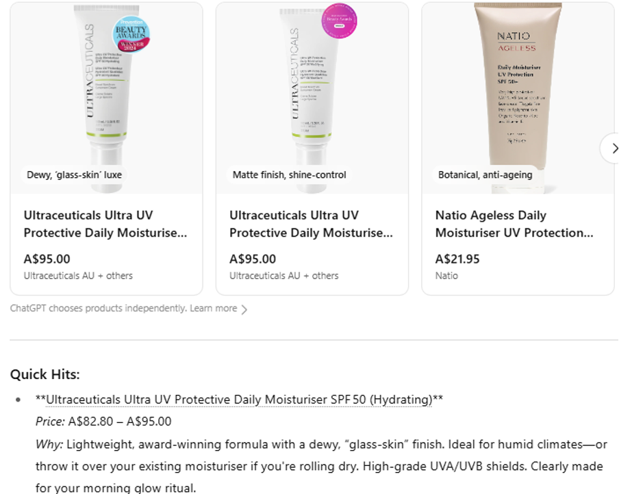 Ask Gemini or GPT to recommend a travel insurer or an affordable SPF Moisturiser and you’ll see it happen in real time just like I did today.